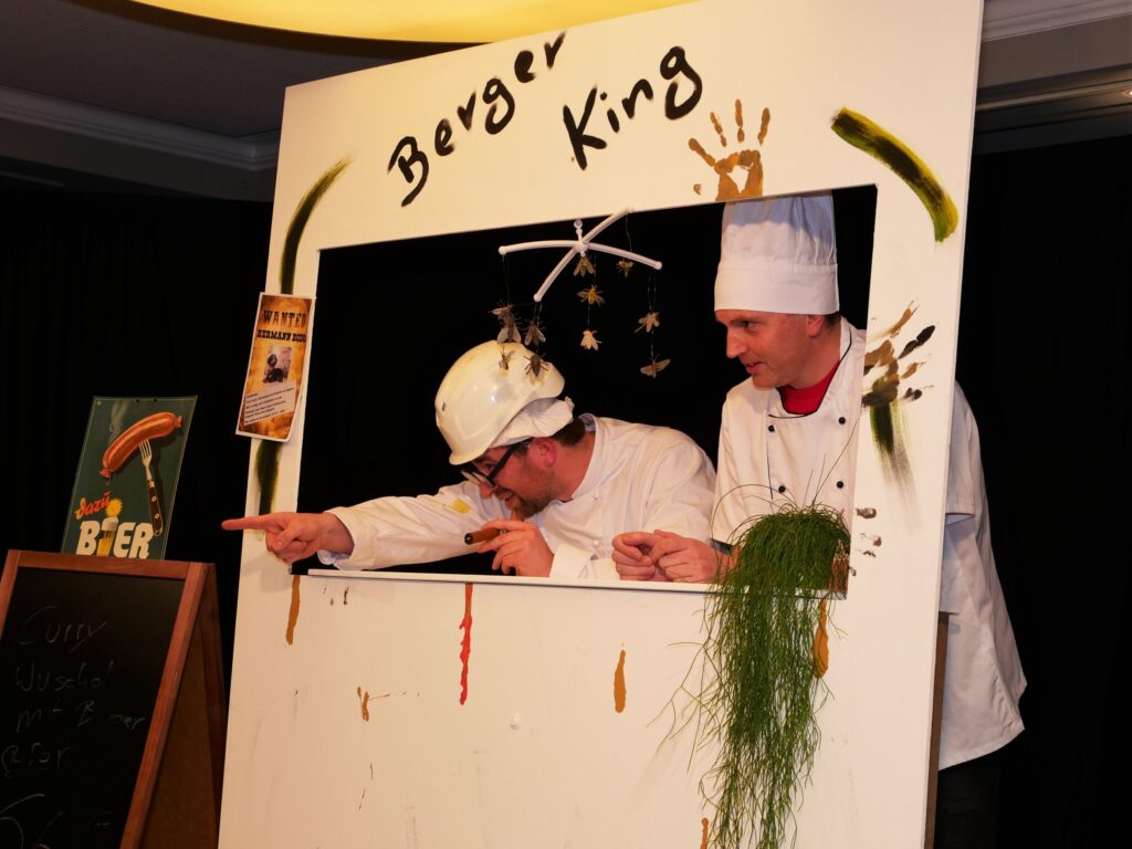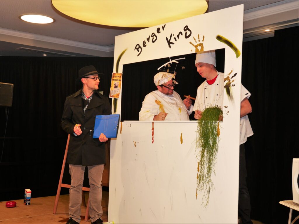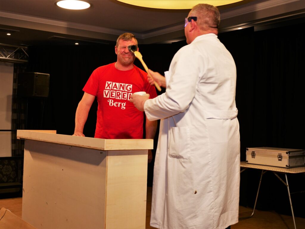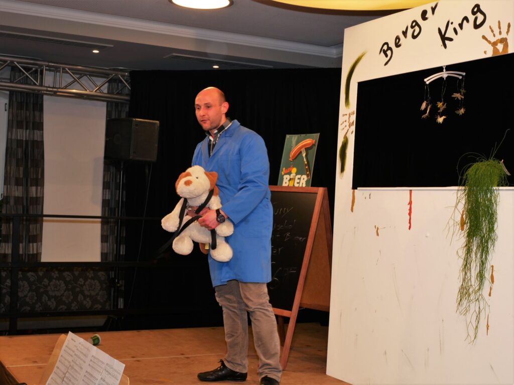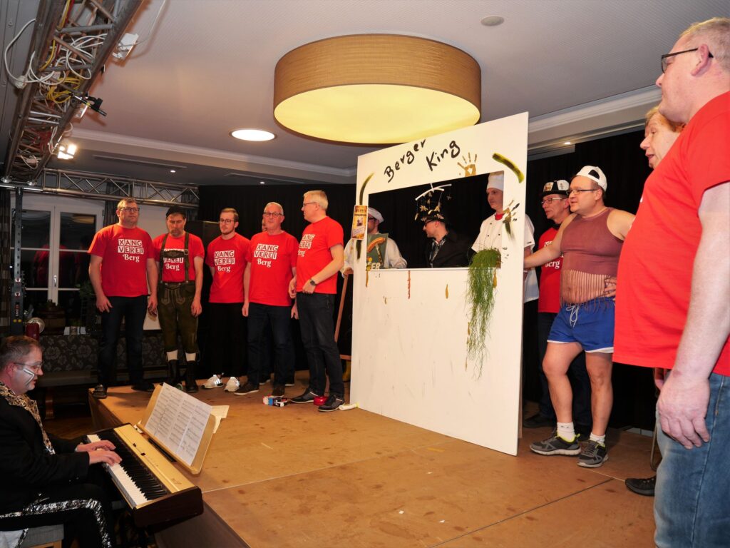 Nachdem der Sängerball letztes Jahr das Rentenalter erreicht hatte, hieß es dieses Jahr frei nach Udo Jürgens: „mit 66 Jahren da fängt der Sängerball erst richtig an„. Am 21. und 23. Februar im Landgasthof und Hotel Rose eröffnete dieses Jahr zum erstenmal die eigens zu diesem Anlass gegründete Böllerkompanie den Sängerball. Die Kompanie hatte noch arg unter Personalmangel zu leiden, so dass nur der Kommandant Franz Rapp mit seinem Schützen Christoph Behmüller zum Salut antrat. Danach sang wie gewohnt der Chor ein paar Lieder, passend zum närrischen Anlass. Norbert Betz und Stefan Geyer ließen es sich auch dieses Jahr nicht nehmen, die Besucher durchs Programm zu führen. Pasend zu den Programmpunkten hatten sie immer eine Erfindung parat, die teilweise schon Nobelpreis verdächtig waren. Unsere Akteure, unterstützt von den Sängerfrauen, hatten sich wieder mächtig ins Zeug gelegt und in Rekordzeit ein witzig- spritziges Programm auf die Beine gestellt. Auch das Musikalische kam nicht zu kurz: unser Dirigent Martin Spranz unterhielt mit der kleinen Besetzung zwischendurch die Ballbesucher. Nach dem Programm konnte man den Abend an der Bar oder auf der Tanzfläche ausklingen lassen.